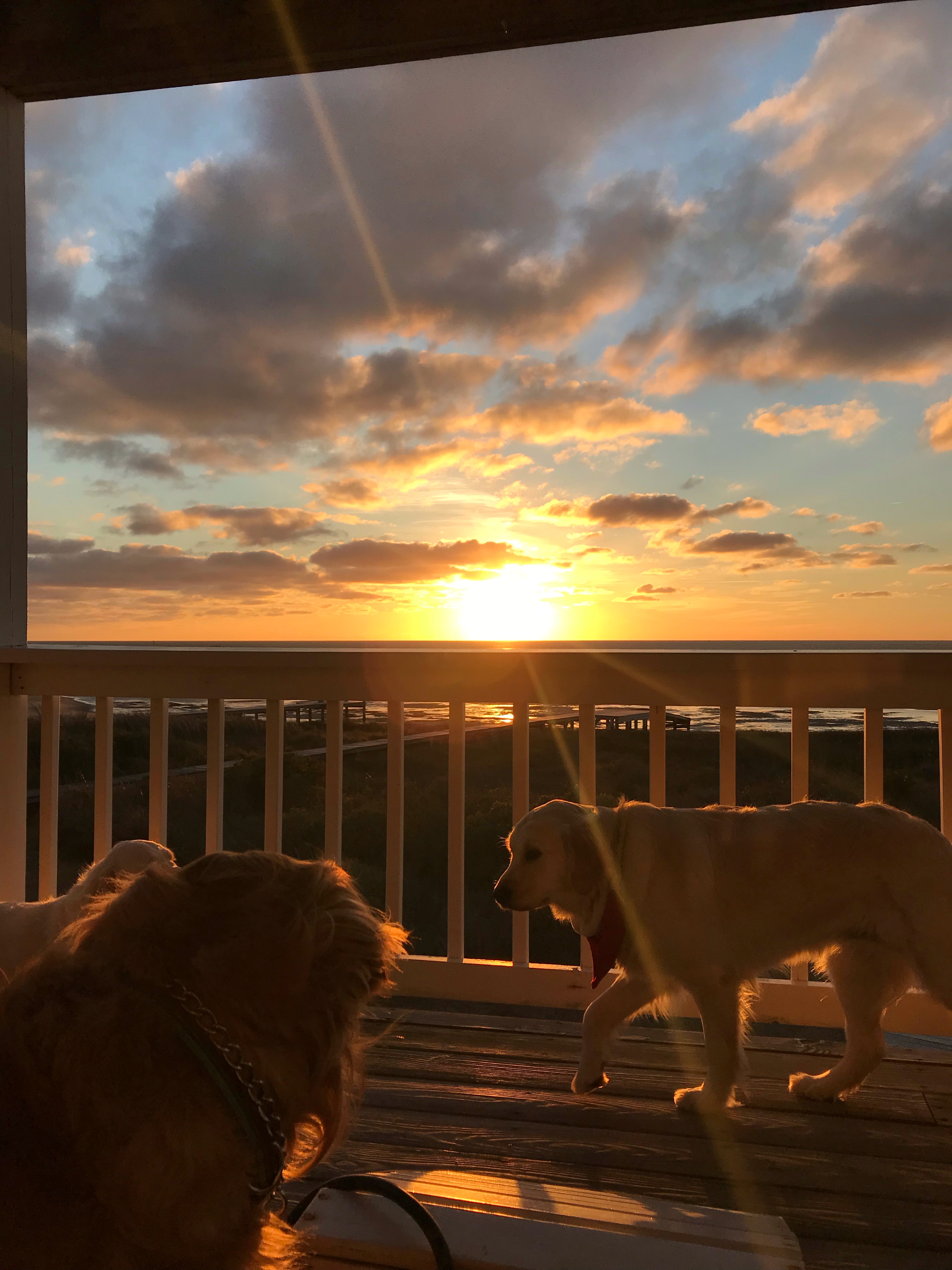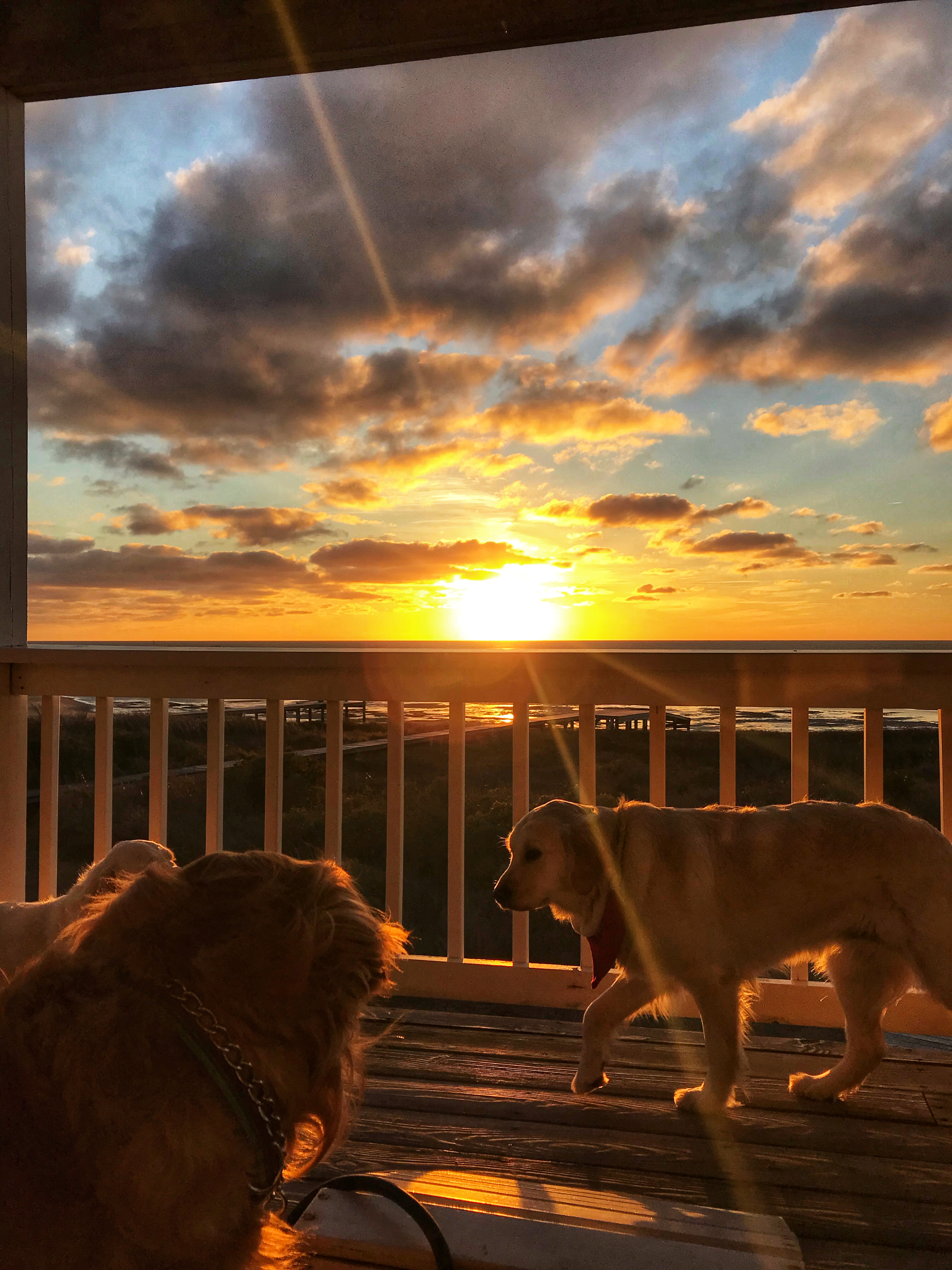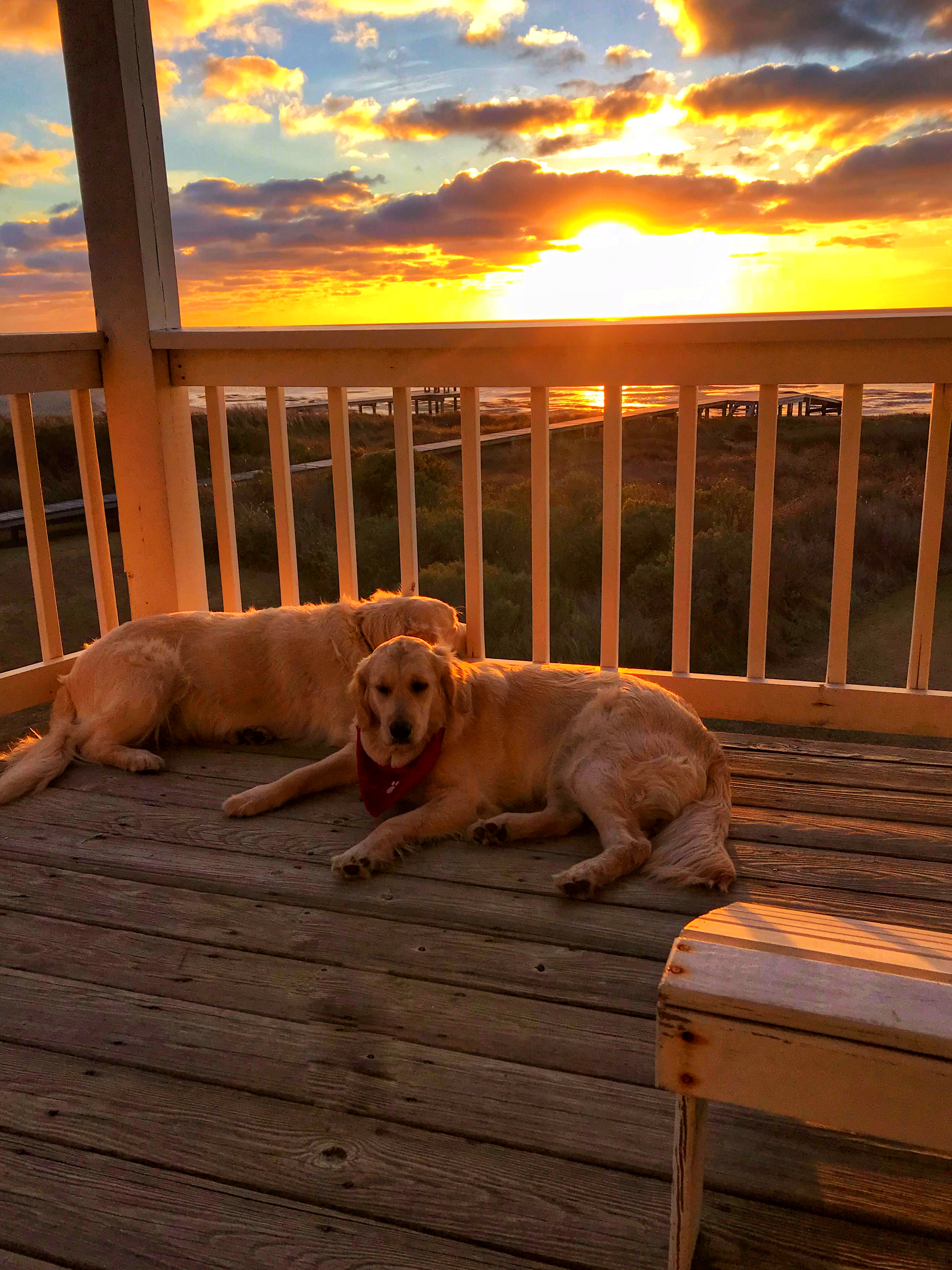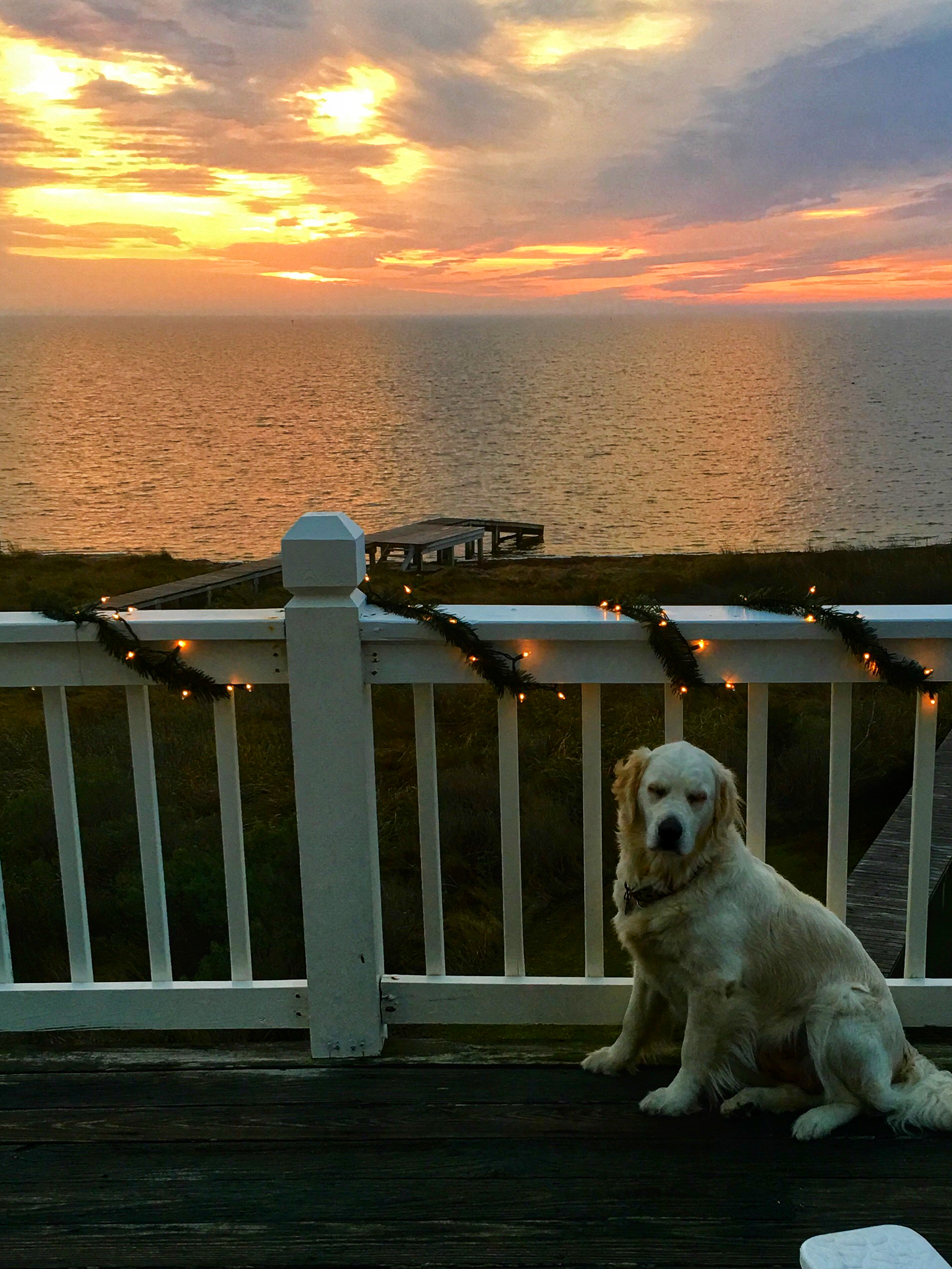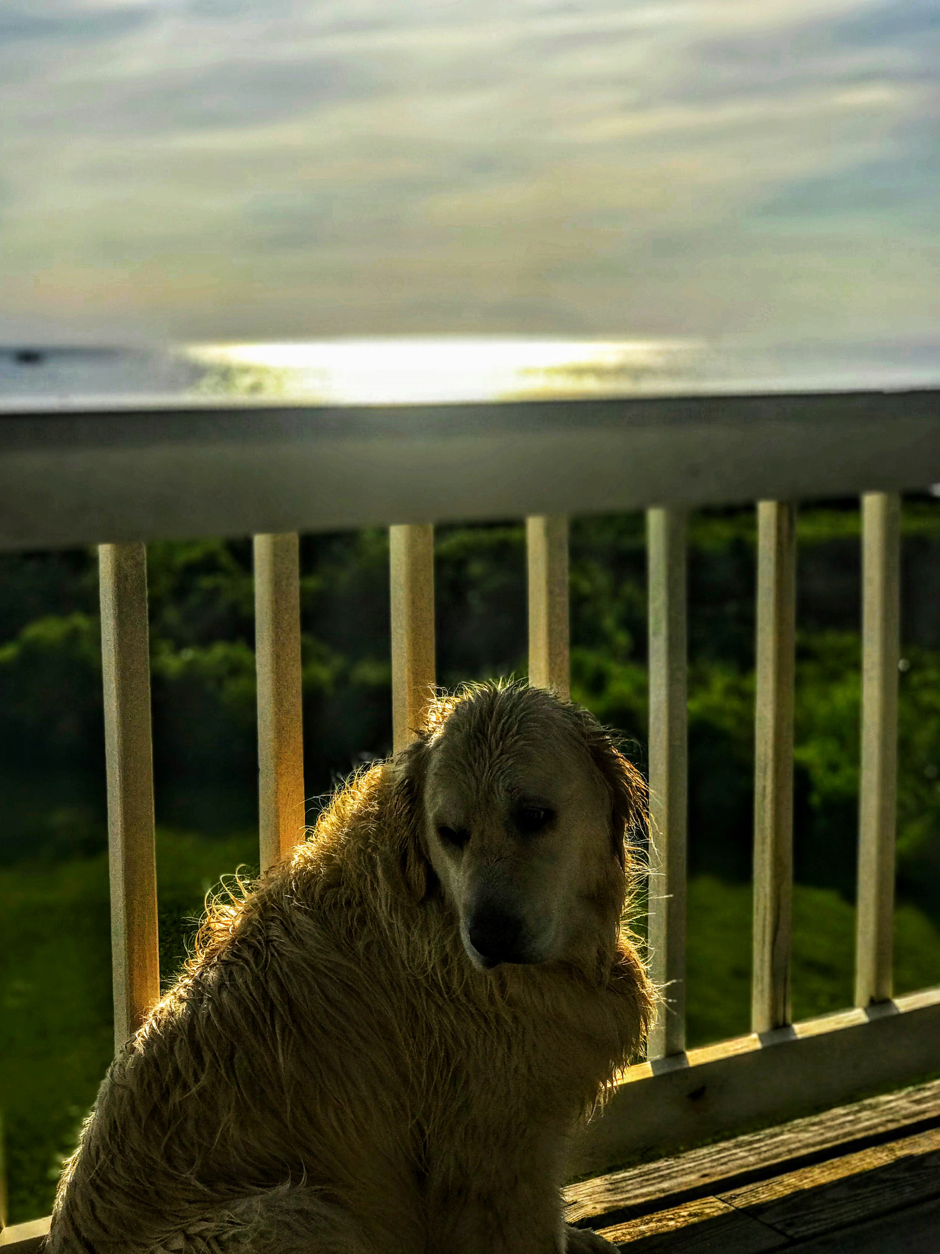 The Sound Side Golden Retrievers spend a lot of time laying around on the deck of the house. The go there after they are hosed down after a swim in the Ocean or Sound. They tend to end up there a lot due to their tendency to always head to the Sound whenever they can.