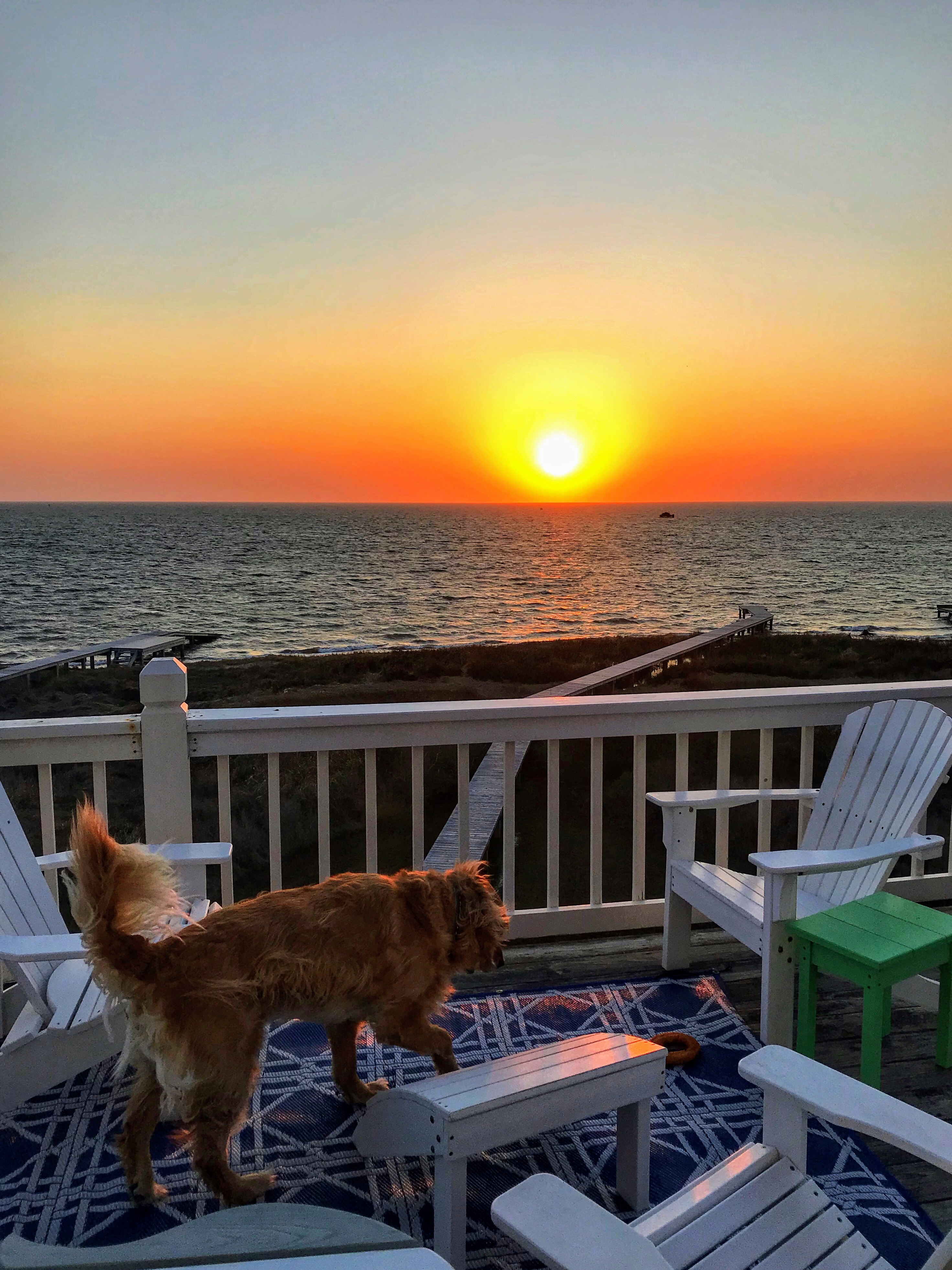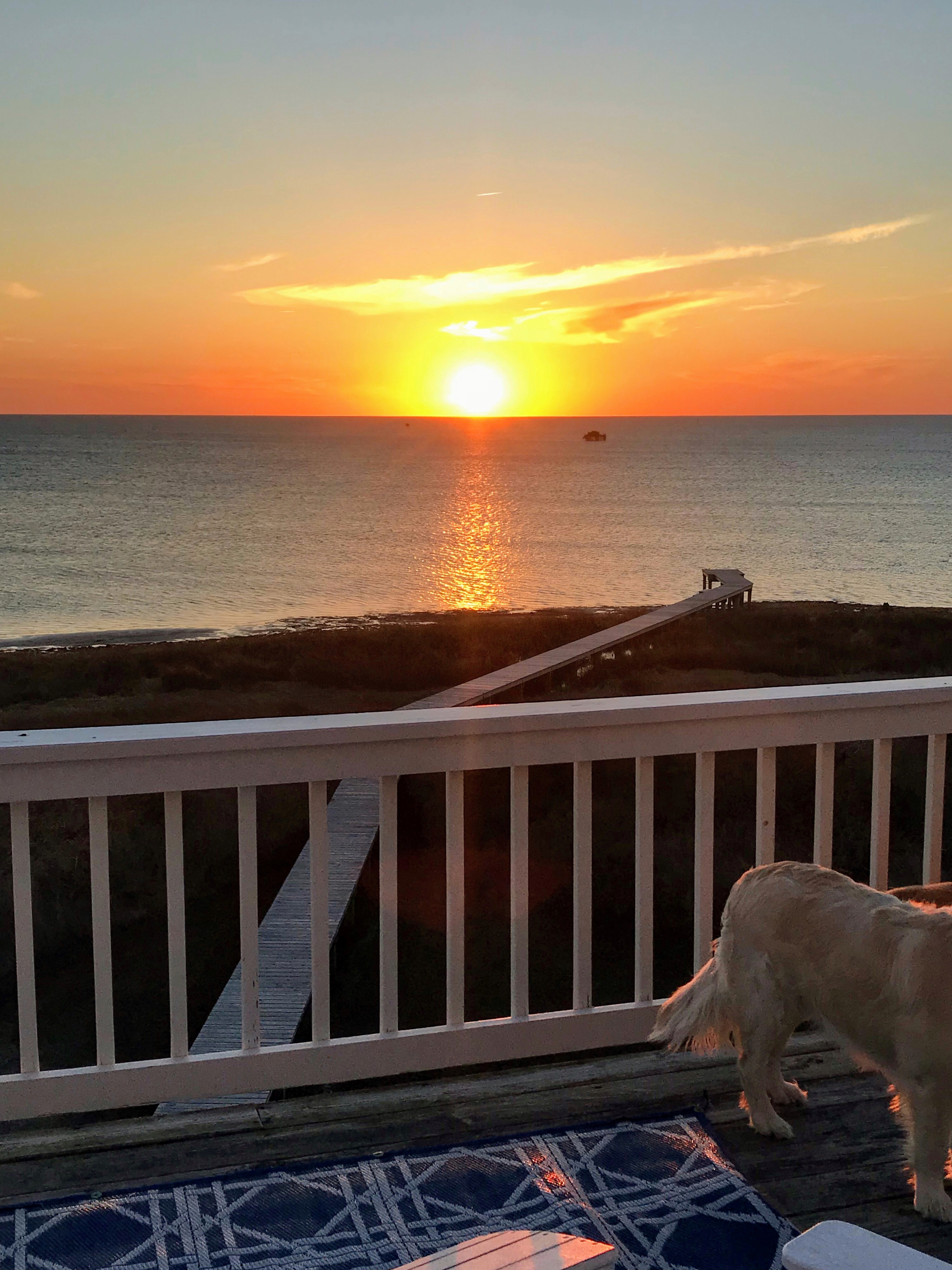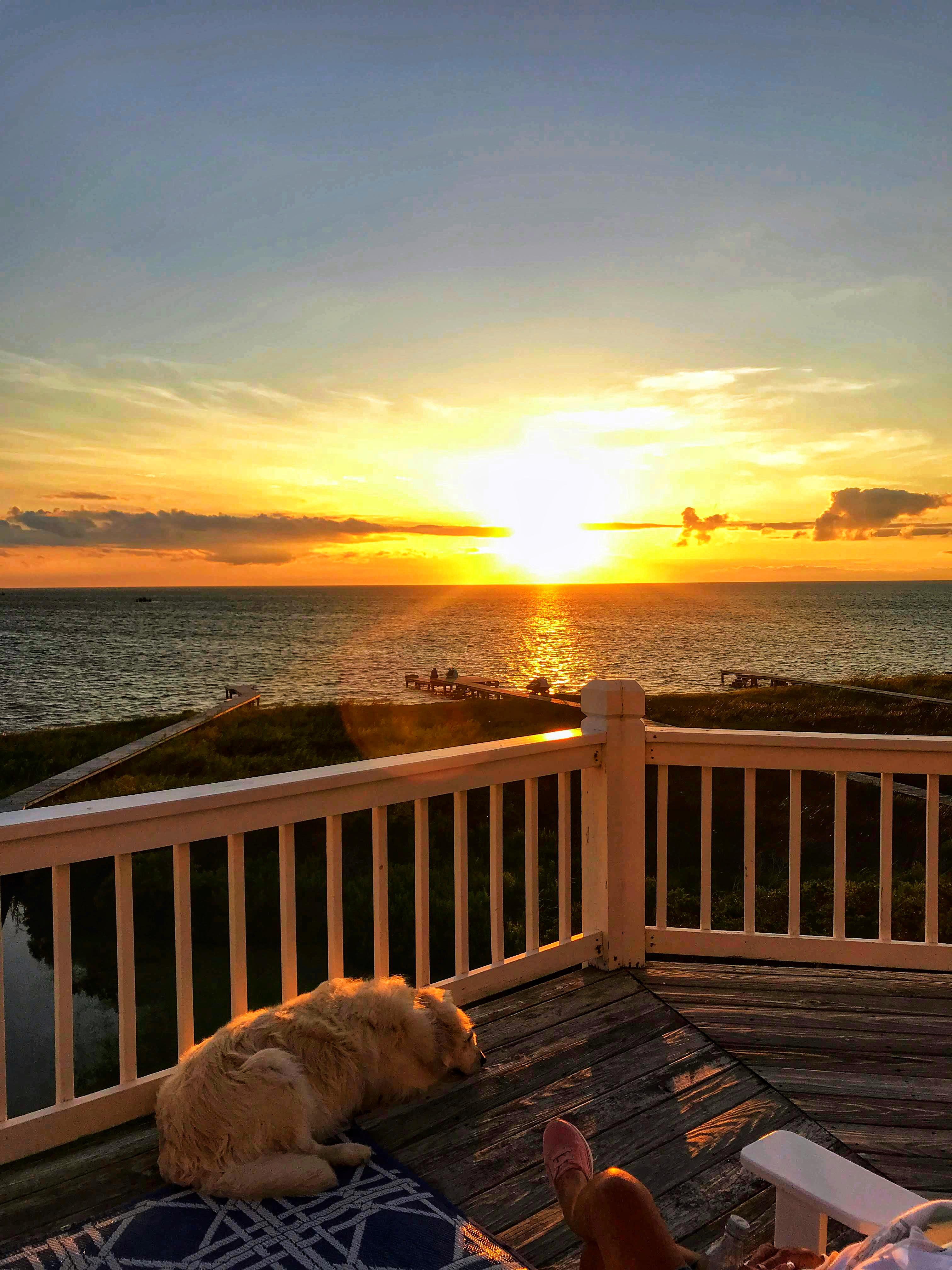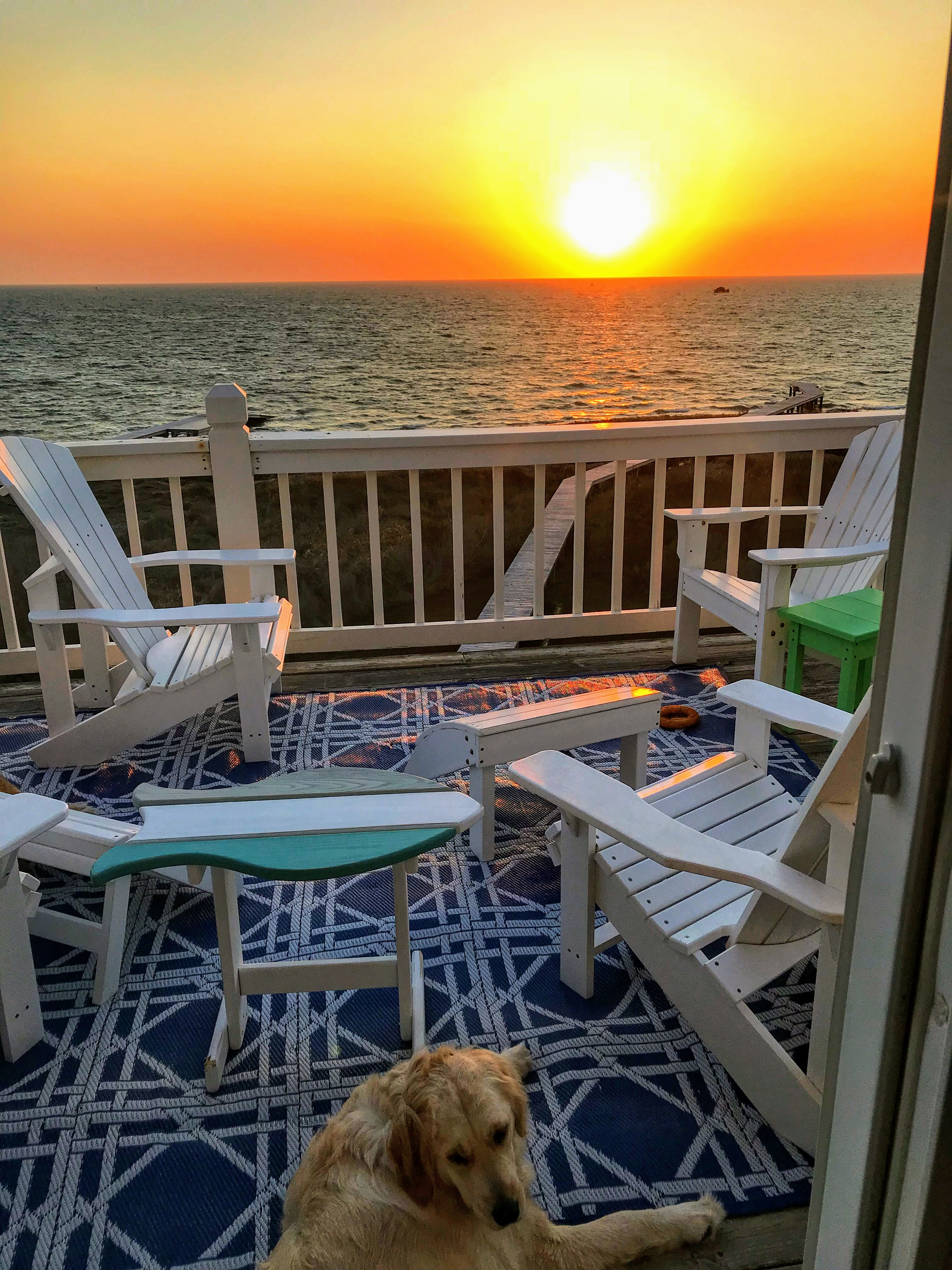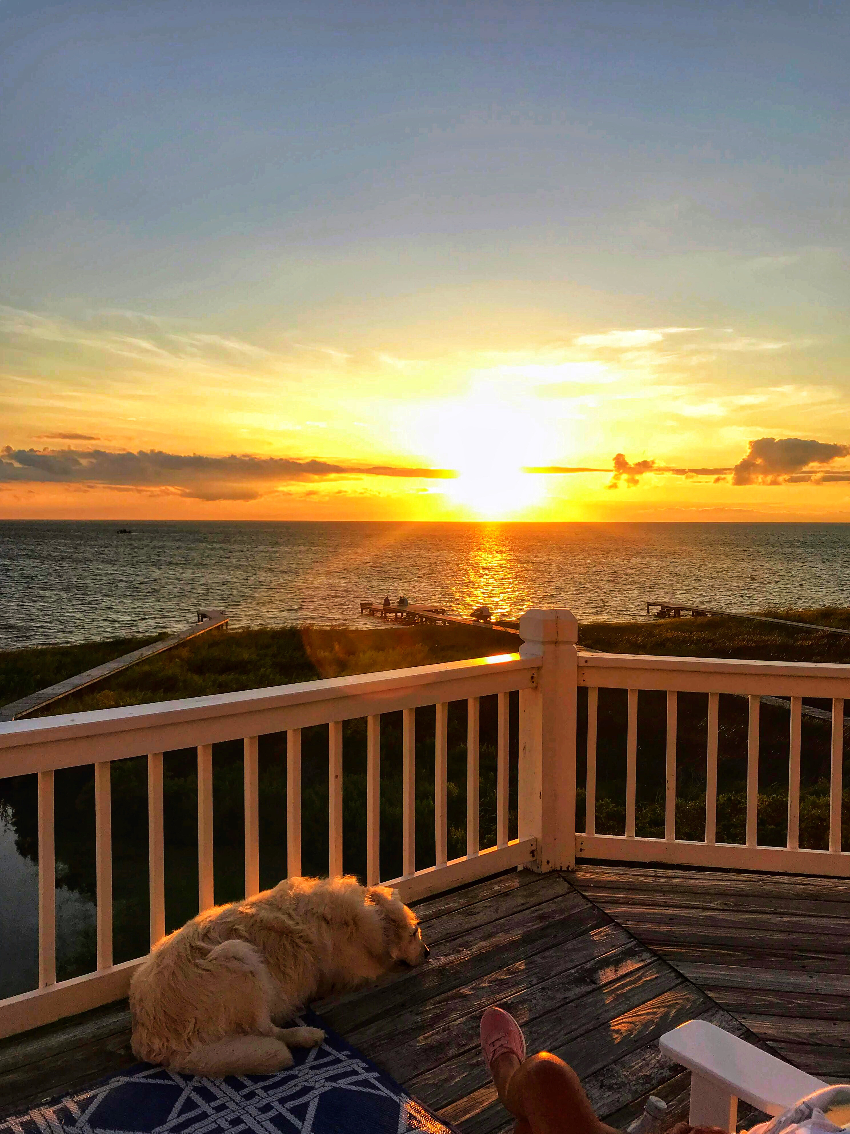 The Sound Side Golden Retrievers spend a lot of time laying around on the deck of the house. The go there after they are hosed down after a swim in the Ocean or Sound. They tend to end up there a lot due to their tendency to always head to the Sound whenever they can.