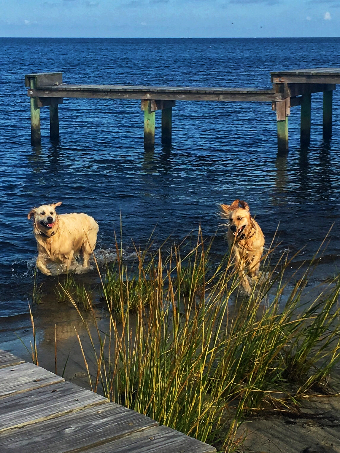 The Sound Side Golden Retrievers are indigenous creatures to water. They are fortunate that they live between two large bodies of water. They have the Atlantic Ocean and the Pamlico Sound.